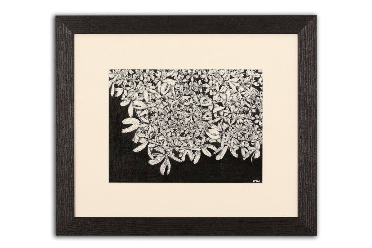 Cow Parsley is a subtle and detailed ink illustration. Mounted, framed and signed by the artist – Simon Wilcox.