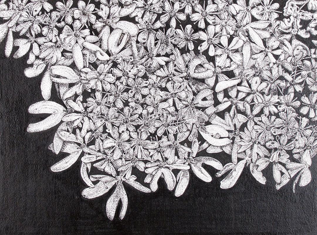Cow Parsley is a detailed pointilist Indian ink illustration.